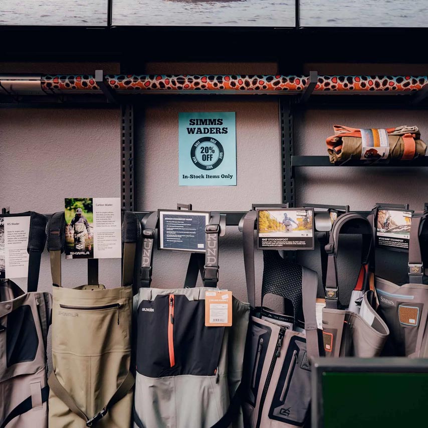 Simms waders on sale at Duranglers, in Durango, Colorado. Photo: Will Warasila for Bloomberg Businessweek